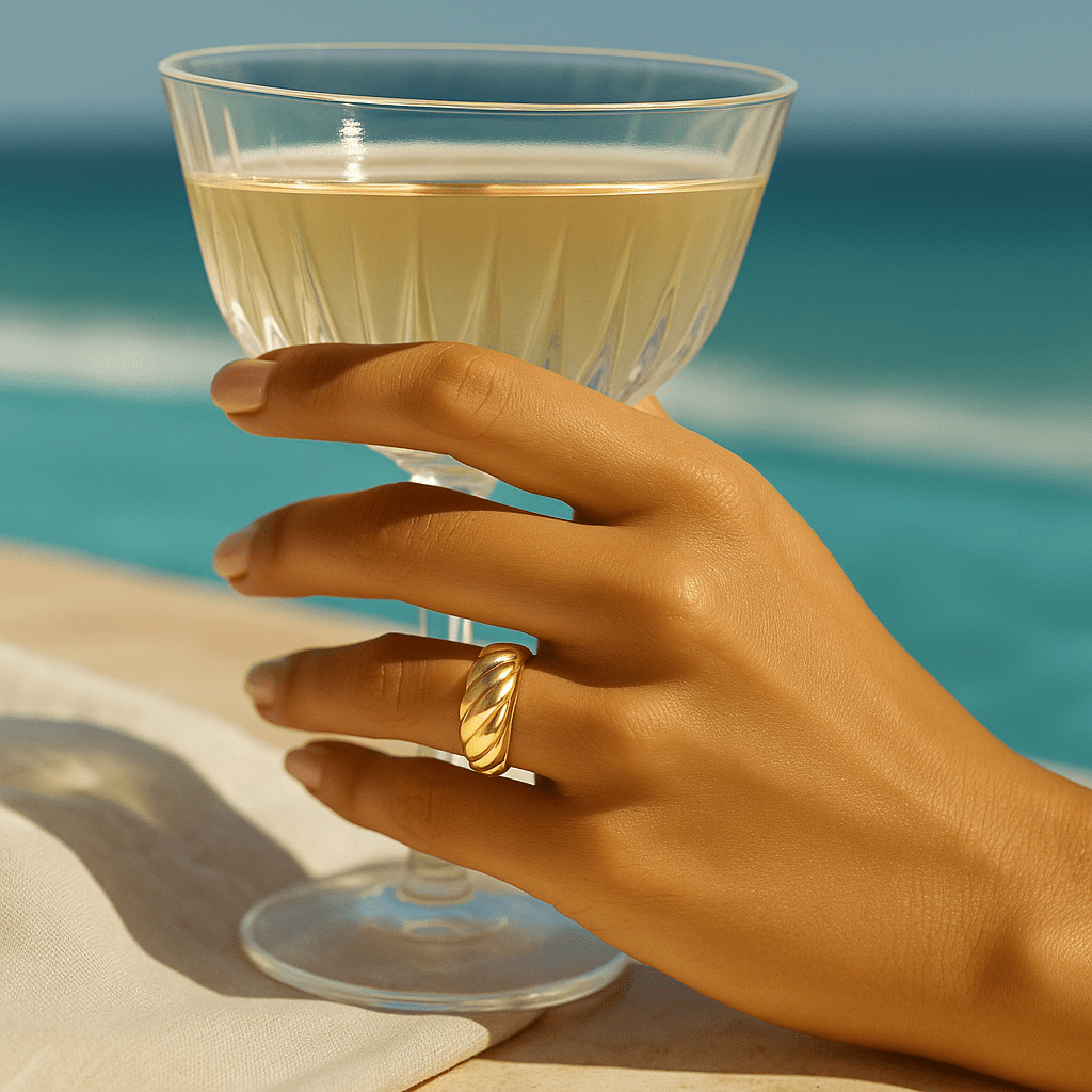 18k gold plating on surgical steel. Engineered to stay brilliant, always.